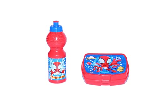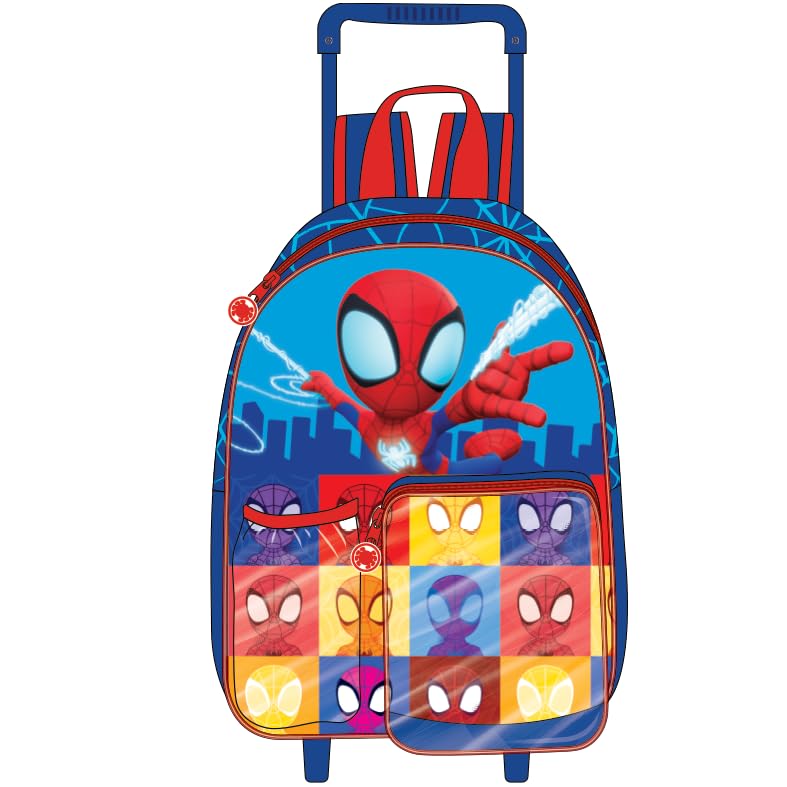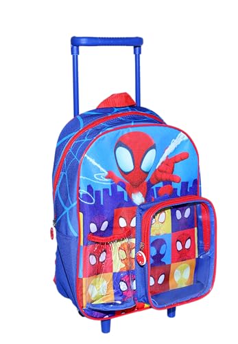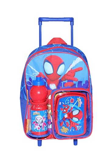 Marvel - مجموعة شنط مدرسية بعجلات 3 في 1 بتصميم سبايدر مان - حقيبة ظهر - زجاجة وصندوق غداء للاولاد