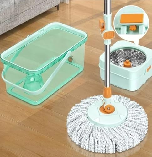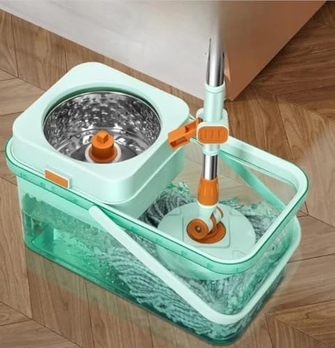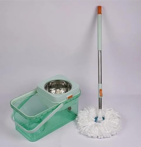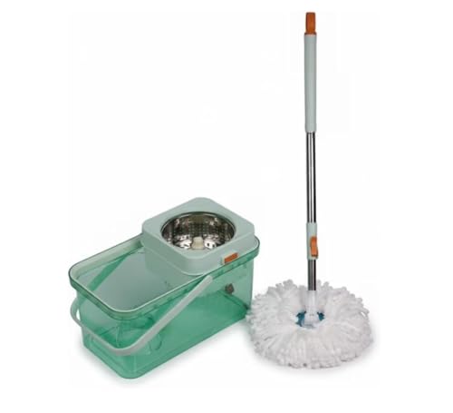 - مجموعة متكاملة: تشمل المجموعة ممسحة دوارة مع دلو شفاف أخضر اللون ومضخة طرد مركزي من الفولاذ المقاوم للصدأ