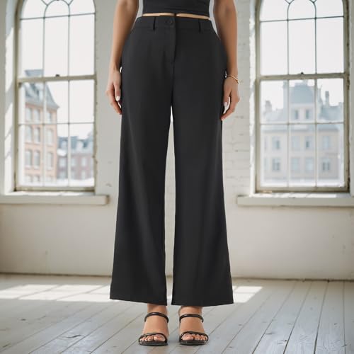Splash - سبلاش بنطلون سادة بجيوب وحلقات للحزام، لون اسود، مقاس 8، 6292376753862