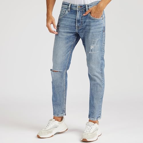 Splash - سبلاش بنطلون جينز سادة مرتفع الخصر بجيوب بلون ازرق - مقاس 34 6292374335305