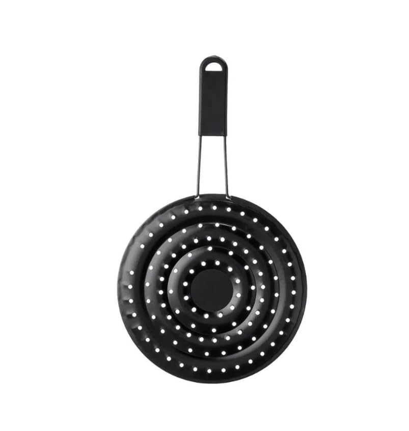 Generic - مصفاة مطبخ واقية من الرذاذ بتصميم دائري مثقوب مع مقبض، لون اسود