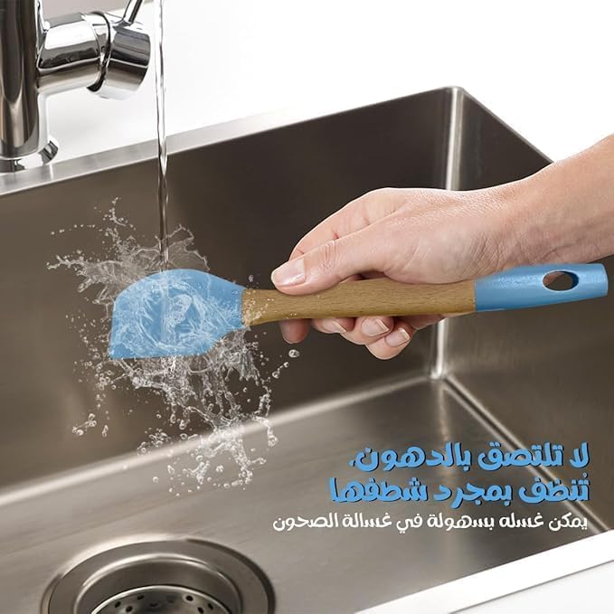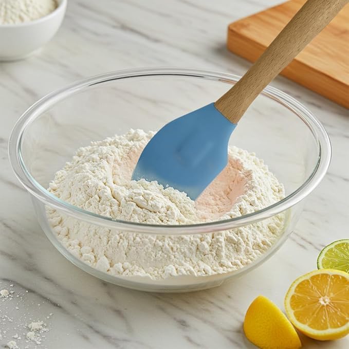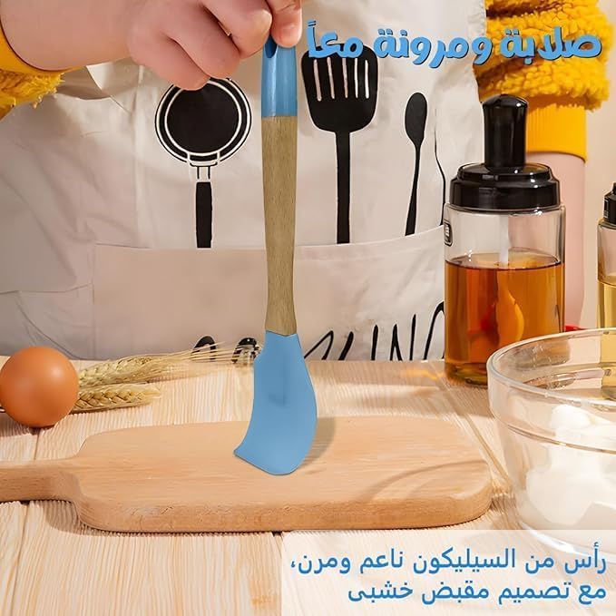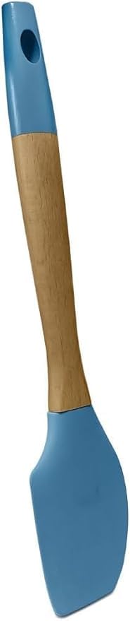 Generic - ملعقة مسطحة من السيليكون مقاومة للحرارة بمقبض خشبي، مجموعة طبخ غير لاصقة للخبز والخلط والطبخ، ادوات مطبخ اساسية (ازرق)