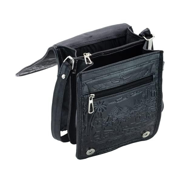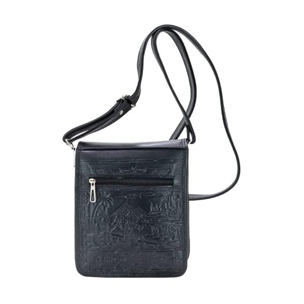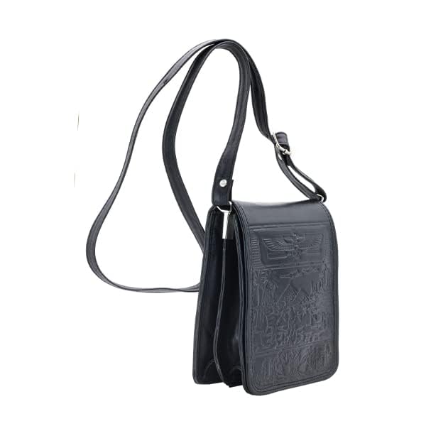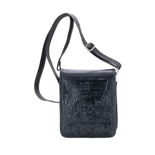 SQUADRA - شنطة كروس جلد للجنسين من سكوادرا - مصنوعة من الجلد بنقشة فرعونية - بلون اسود, أسود