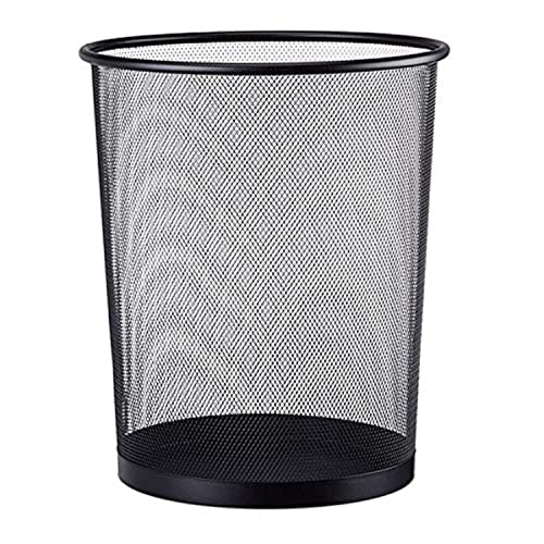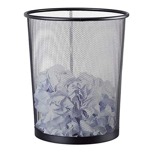 Showay - سلة مهملات دائرية شبكية معدنية سوداء للمكتب والمنزل من استيليون يُفتح أعلى