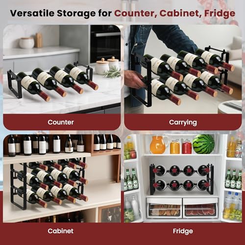 - Versatile placement: Use as a wine rack for fridge, cabinet, or countertop; doubles as a drink rack for water, soda, or mixers