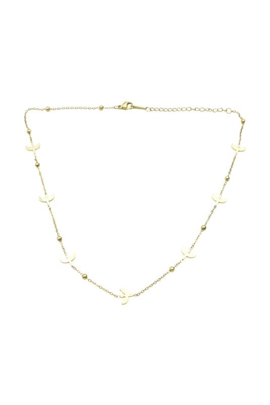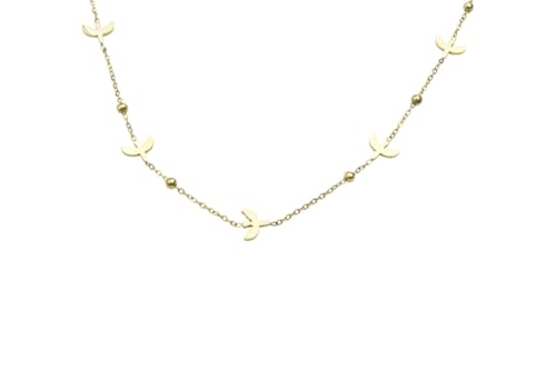 Generic - عقد من الستانلس ستيل مزين بخرز مع دلايات على شكل طائر وهلال للنساء - ذهبي