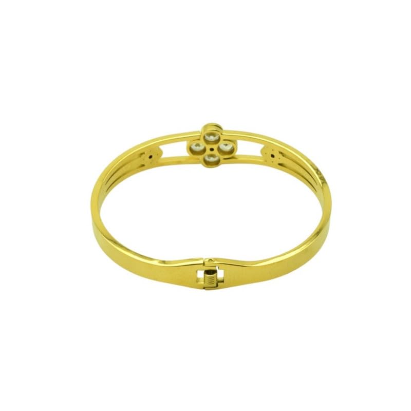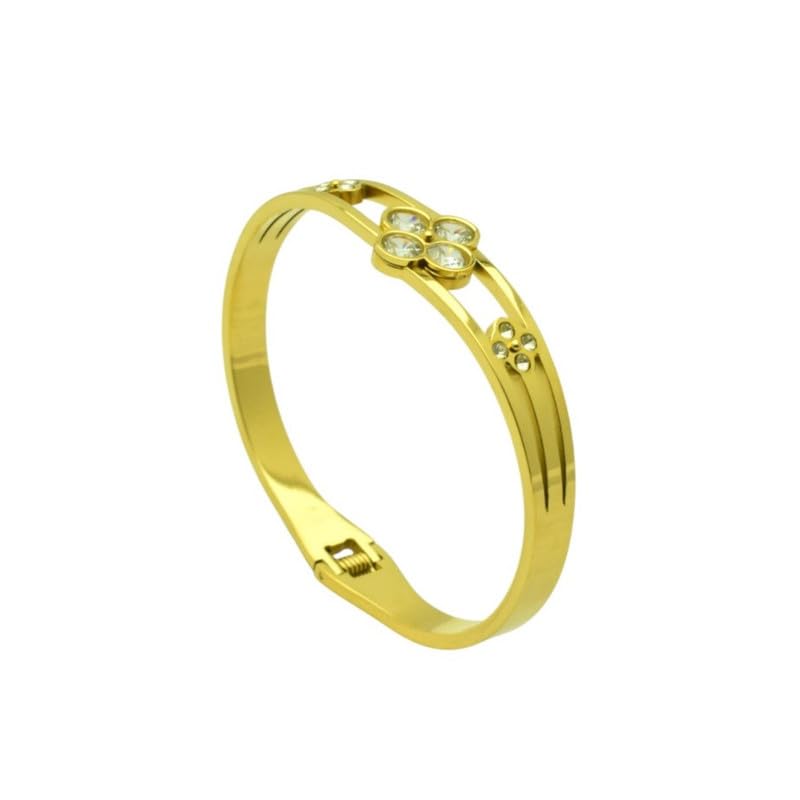 Generic - سوار حلقي من الستانلس ستيل بتصميم زهرة البرسيم للنساء مقاس 18 - ذهبي
