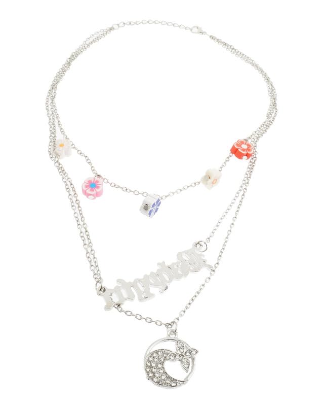 Generic - سلسلة استانلس ستيل بدلاية بتصميم لطيف أنيقة 3 دور مقاس قابل للتعديل للبنات ، فضي TON-A-1276