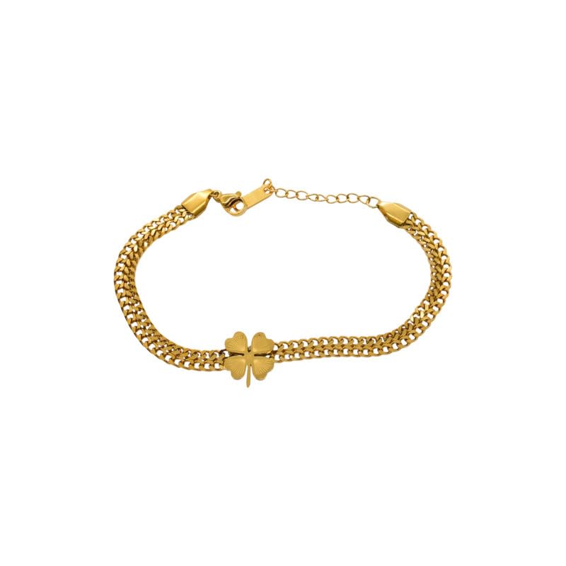 Generic - سوار سلسلة من الستانلس ستيل بتصميم زهرة للنساء - ذهبي