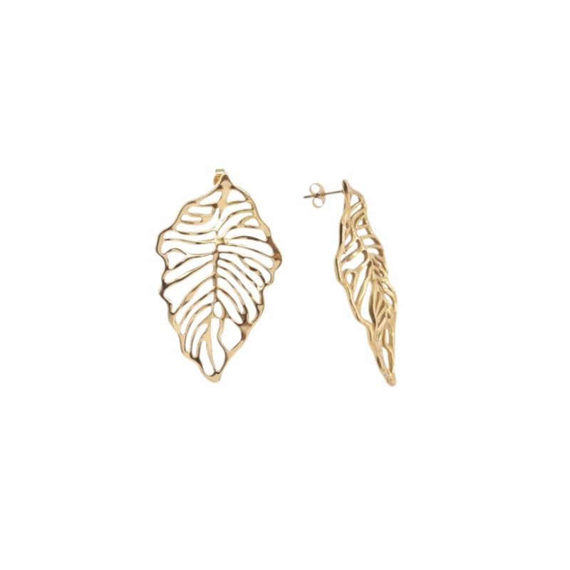 Generic - اقراط متدلية من الستانلس ستيل بلون ذهبي على شكل ورقة شجر مونستيرا للنساء - ذهبي