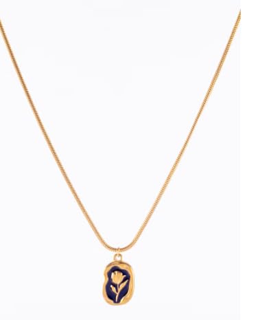 Generic - سلسلة ذهبية من الفولاذ المقاوم للصدأ مع دلاية على شكل وردة بلون اسود