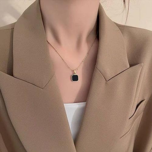Generic - عقد ذهبي من الستانلس ستيل مع حجر كريم اسود، سلسلة 24 انش