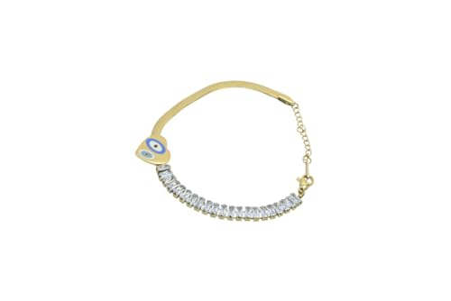 Generic - سلسلة نصف ثعبان من الستانلس ستيل وسوار تنس كريستال مع دلاية على شكل قلب عين الحسد للنساء - ذهبي