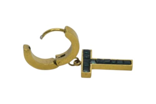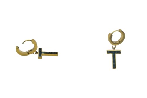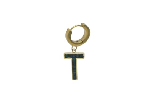 Generic - اقراط حلقية من الستانلس ستيل مع تعليقة على شكل حرف "T" واحجار داكنة للنساء - ذهبي