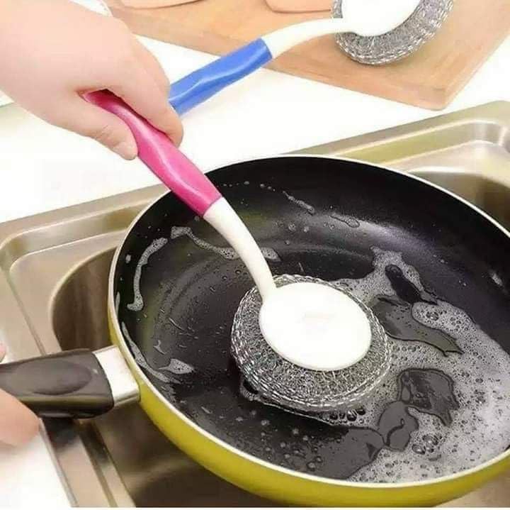 Generic - فرشاة تنظيف شبكية من الستانلس ستيل بمقبض بلاستيكي، فرشاة تنظيف حوض المطبخ، عبوة من قطعة واحدة، متعددة الالوان
