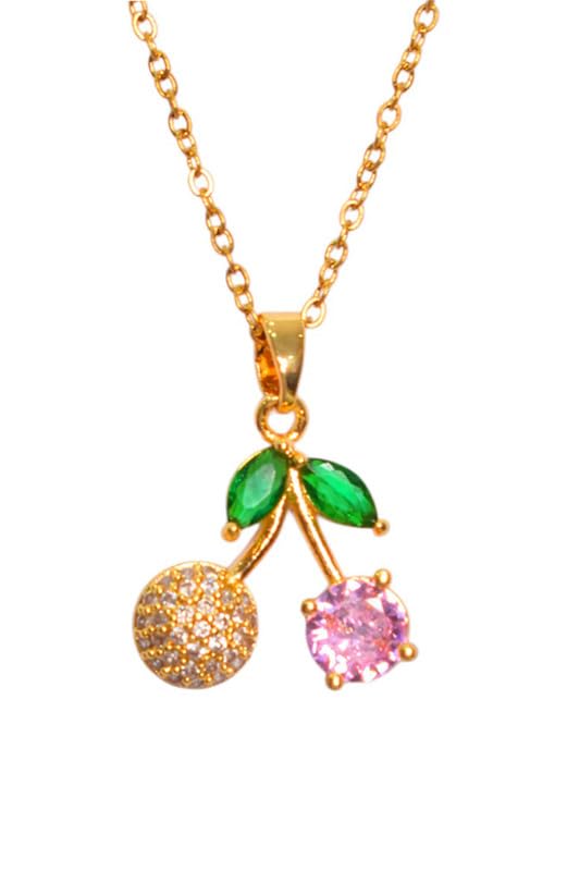 Generic - عقد من الستانلس ستيل بتصميم كرز للبنات - متعدد الالوان - 74682