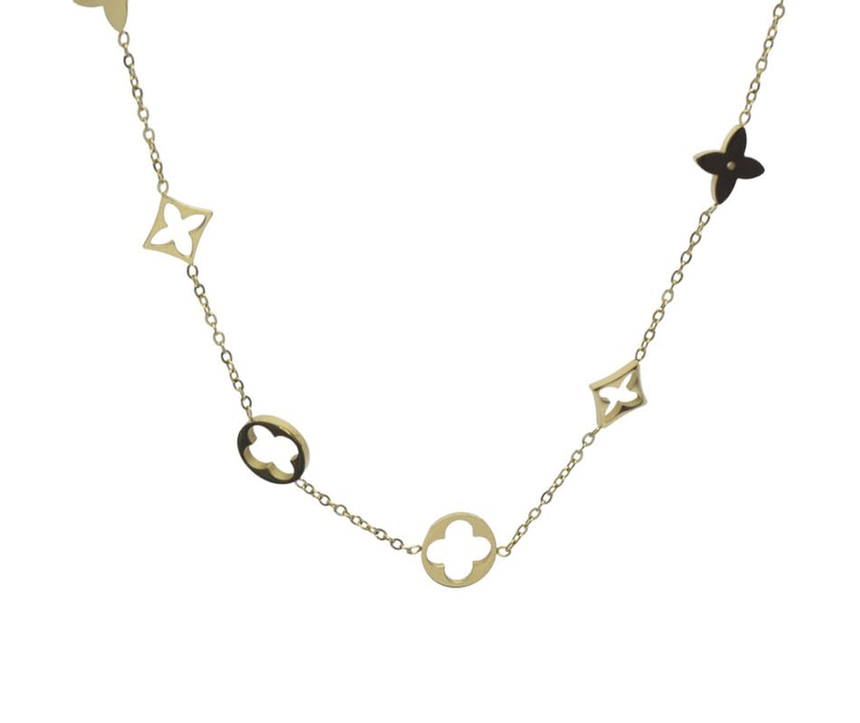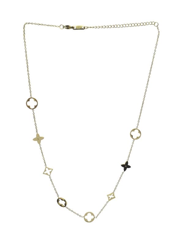 Generic - عقد من الفولاذ المقاوم للصدأ بتصميم زهرة البرسيم للبنات - ذهبي وأسود