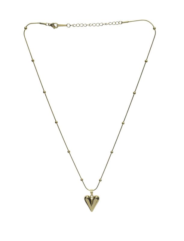 Generic - عقد من الستانلس ستيل بتصميم قلب مسطح للبنات - ذهبي