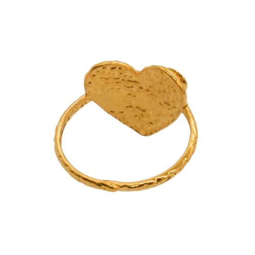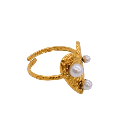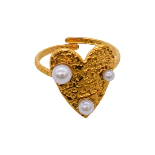 Generic - خاتم للنساء من الستانلس ستيل بتصميم قلب مرصع باللؤلؤ، مقاس واحد - ذهبي