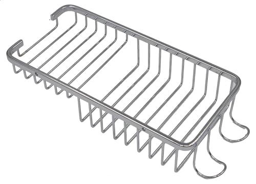 Generic - "رف حمام مستطيل ستانلس ستيل 27 سم - سلة تخزين جدارية من الفولاذ المقاوم للصدأ مع خطافات تعليق لليفة والمناشف - منظم دش مقاوم للصدأ"
