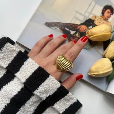 Generic - خاتم استنلس ستيل مطلي بالذهب لايسبب الحساسية شكل قلب للمناسبات والهدايا اكسسوار