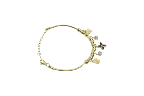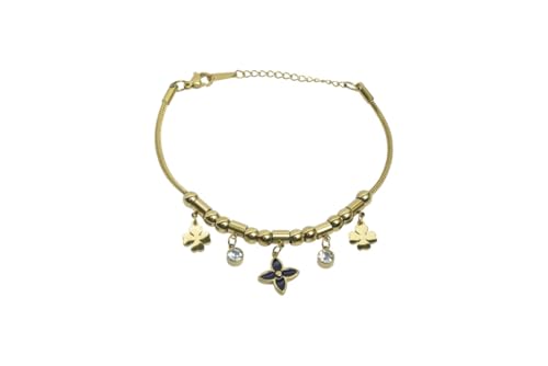 Generic - سوار بدلاية على شكل قضيب منزلق من الستانلس ستيل مع زهرة مطلية بالكريستال للنساء - ذهبي