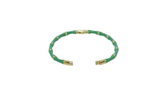 Generic - سوار بانجل بامبو من الستانلس ستيل ومينا ناعمة للنساء - اخضر