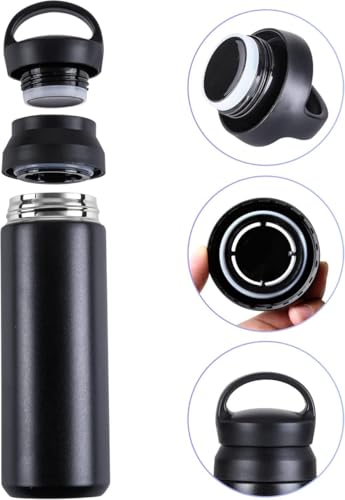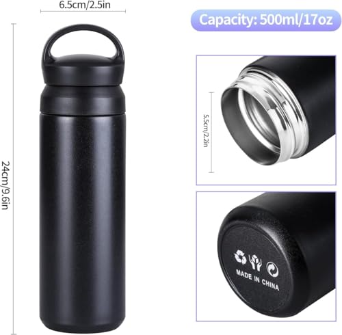 Generic - حافظة مشروبات حرارية من الفولاذ المقاوم للصدأ، أسود، ٥٠٠ مل، مع غطاء محكم، تصميم عصري، ٢٤ سم