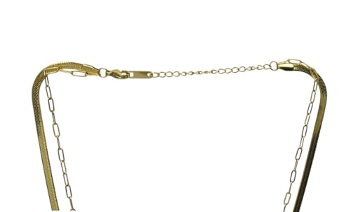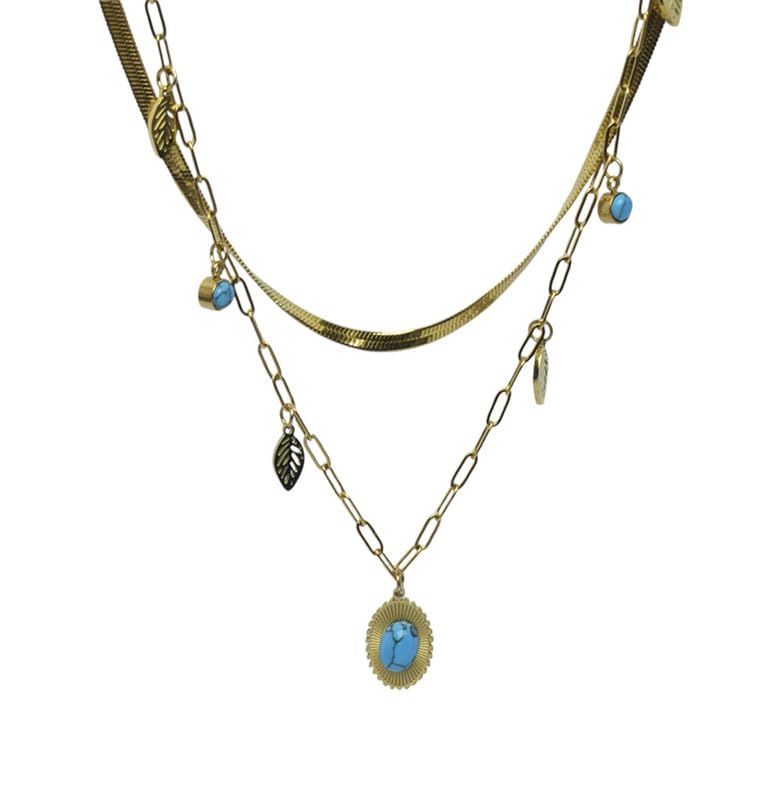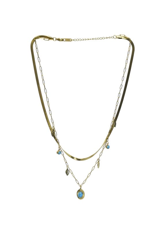 Generic - عقد توينز من الستانلس ستيل مع سلسلة ثعبان مسطحة وتصميم خاص للبنات - ذهبي وازرق