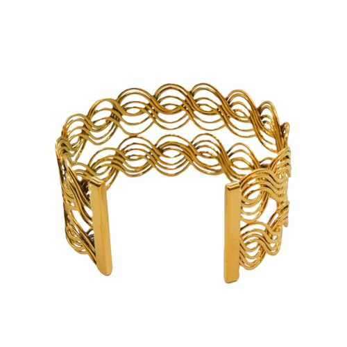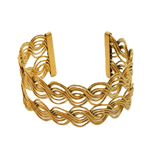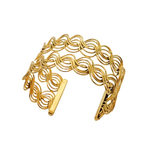 Generic - سوار للنساء بتصميم مموج من الستانلس ستيل، مقاس واحد - ذهبي FA1