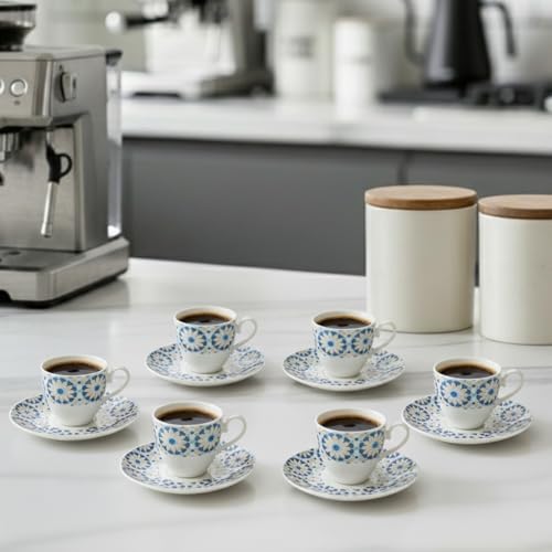 - محتويات المجموعة: مجموعة قهوة كاملة مكونة من 12 قطعة تتضمن 6 أكواب أنيقة و6 أطباق مطابقة، مثالية لتقديم القهوة للضيوف