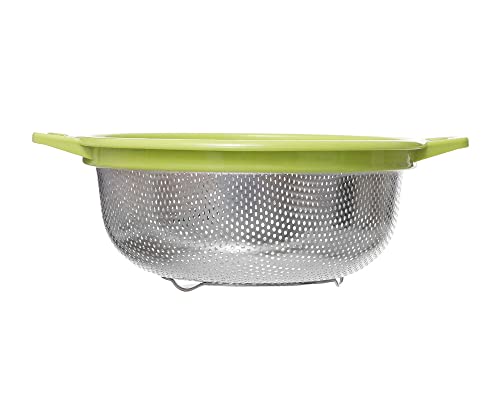 Generic - مصفاه مكرونه استاتلس بيد بلاستك 24 سم, فضي واخضر