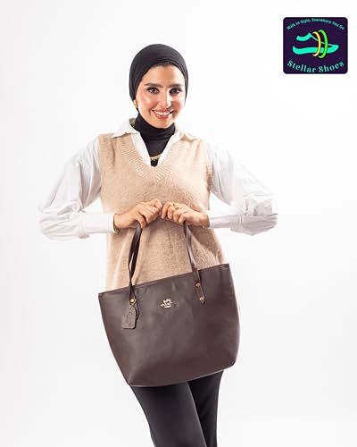 Generic - Stellar حقيبة يد نسائية عصرية، جلد فاخر بني، سعة كبيرة، حمالات كتف قابلة للتعديل، 40×34×12 سم، مناسبة للعمل والتسوق اليومي