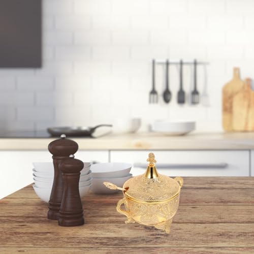 STOBAZA - وعاء سكر من قطعة واحدة للعلب والتوابل والسكر والتهنئة بالمنزل الجديد زنك ذهبي وعتيق زجاجة هدايا الستيل والمعدن والزجاج المنظم حاوية قهوة وسكر عدد القطع: 1 ستوبازا