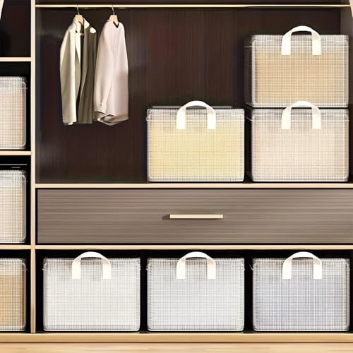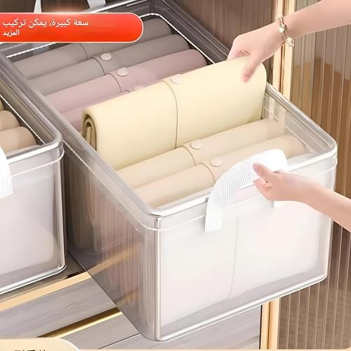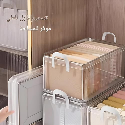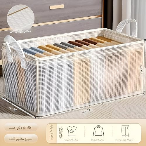 Generic - سلة تخزين - منظم ملابس شفاف قابل للطي مع اطار ستيل وسعة 26 لتر لتنظيم خزانة الملابس بكفاءة في المنزل او مساحة الخزانة