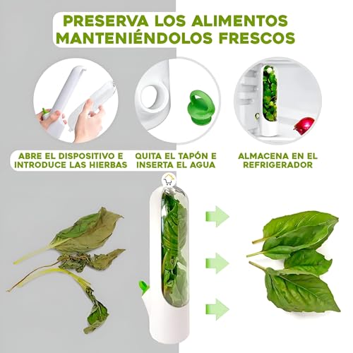 - تحتوي الحاوية على غطاء قابل للإزالة وخزان مياه، حتى يتمكن المستخدمون من شطف وتجفيف الأعشاب مثل الكزبرة والنعناع وإكليل الجبل قبل وضعها في الداخل، مما يضمن غمر السيقان في الماء للحصول على أقصى قدر من النضارة.
