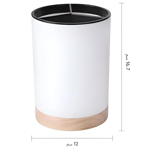 - تم تصميم دلو التخزين هذا بشكل أسطواني أنيق، ويوفر مساحة واسعة لتنظيم مجموعة واسعة من أدوات المطبخ بما في ذلك الملاعق والملاعق والمغارف والخفاقات، مما يساعد على الحفاظ على سطح طاولة خالٍ من الفوضى.