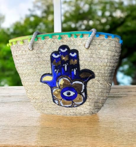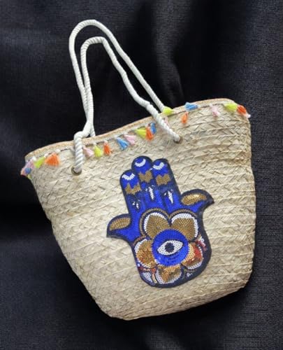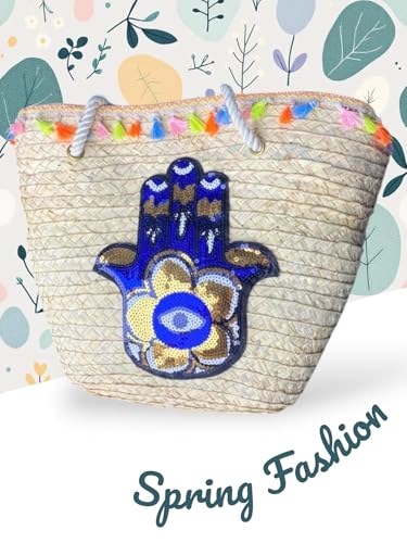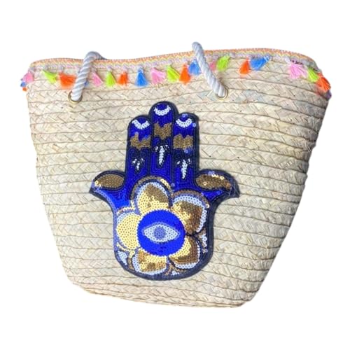 Generic - حقيبة من القش، حقيبة شاطئ صيفية، حقيبة يد نسائية كبيرة منسوجة يدويًا، حقيبة كتف من الخوص