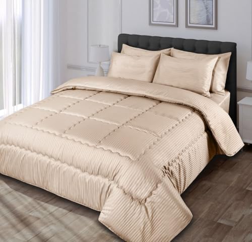 Forbed - لحاف سترايب مايكروفايبر 3قطع دبل 235*235 لحاف +2كيس خدادية كافيه