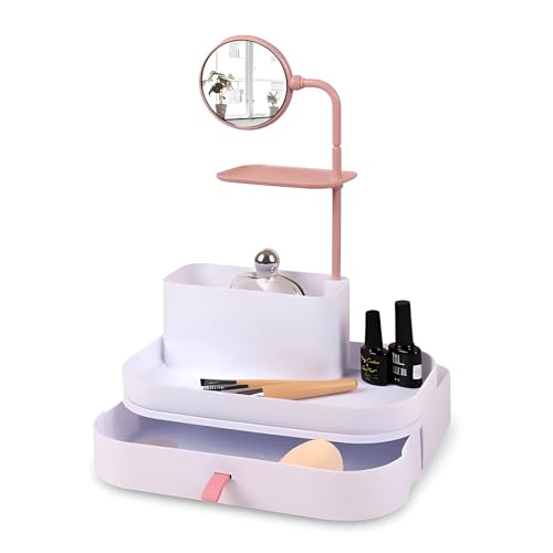 Generic - منظم مستحضرات تجميل انيق - حامل مكياج واكسسوارات اكريليك مع مرآة، هيكل مقاوم للكسر، تصميم عصري، سهل التجميع، درج كبير للكفاءة