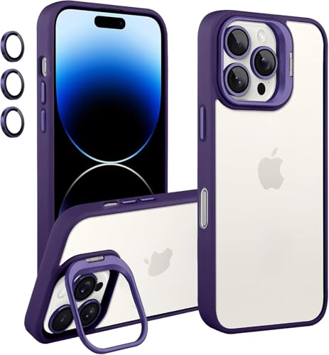 Generic - جراب موبايل انيق بحواف من السيليكون، ظهر من البولي يوريثين الحراري، مسند مدمج وواقي عدسة الكاميرا متوافق مع ايفون 16 برو ماكس (ارجواني داكن)