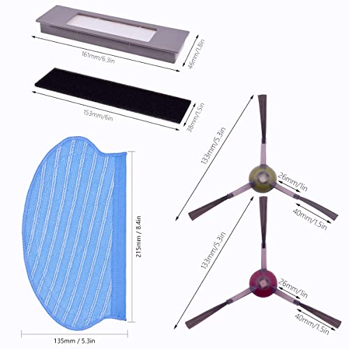 Sunkizzrs - مجموعة ملحقات المكنسة الكهربائية الروبوتية من صن كيزرس® متوافقة مع ايكوفاكس ديبوت اوزمو 920/950/T5 ماكس (مجموعة من 6 قطع) (2 فرشاة جانبية، 2 فلتر تنقية الهواء عالي الكفاءة، 2 قماش مسح)