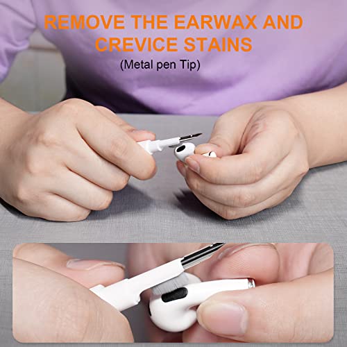 - 【مجموعة تنظيف من قطعة واحدة】يمكن للسن المعدني إزالة الأوساخ المخفية في فجوات وثقوب سماعة الأذن، ويمكن لفرشاة المايكروفايبر تنظيف الغبار، ويمكن للفرشاة الزغبية عالية الكثافة تنظيف علبة الشحن، ويمكن لكرة الغبار أن تنفخ الغبار العائم والجزيئات الأخرى