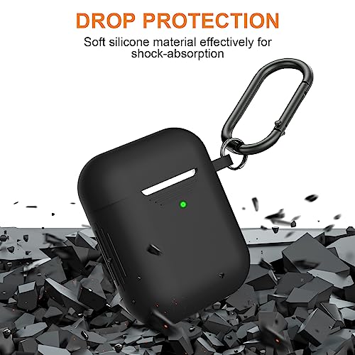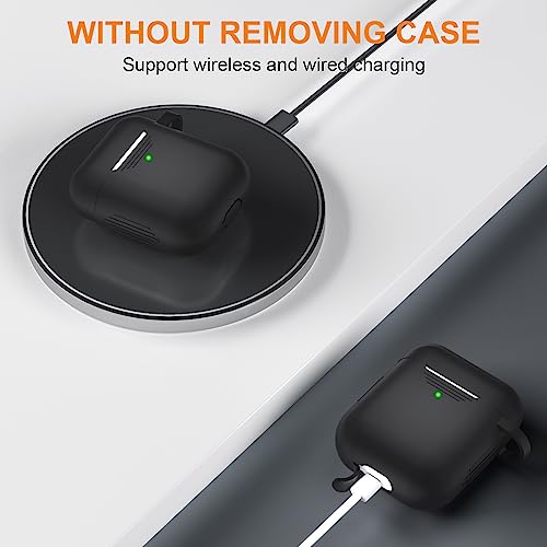 supfine - سوبفاين [2 في 1] غطاء حماية ايربودز من السيليكون الناعم ومجموعة تنظيف سماعات ايربودز متوافقة مع حافظة شحن ايربودز الجيل الثاني والاول (اسود)