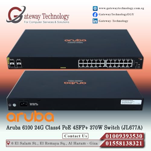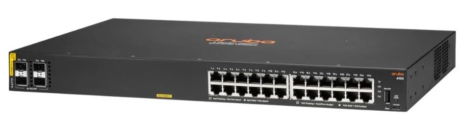 - سويتش 6100 24G كلاس4 PoE 4SFP+370 واط (JL677A) 24 منفذ 10/100/1000BASE-T 4 منافذ 1G/10G SFP+ (يدعم تقنية نقل الطاقة عبر الايثر) المعايير: IEEE802.3af, 802.3at1x منفذ وحدة تحكم USB-C + 1x USB Type-A USB Type-A Host port مزود طاقة ثابت (500 واط) ما يصل إلى 370 واط من الفئة 4 PoE الطاقة مراوح ثابتة
