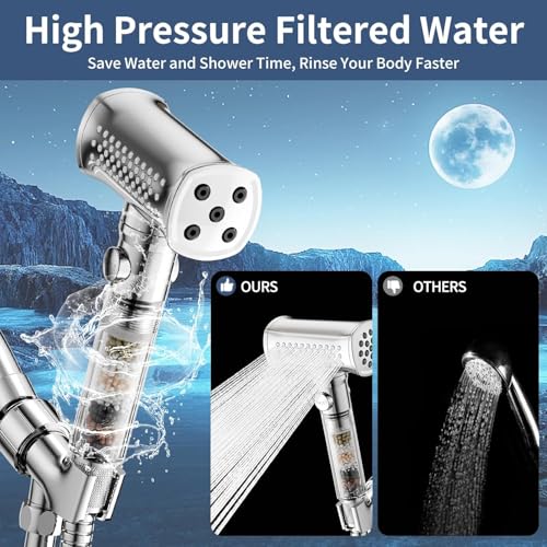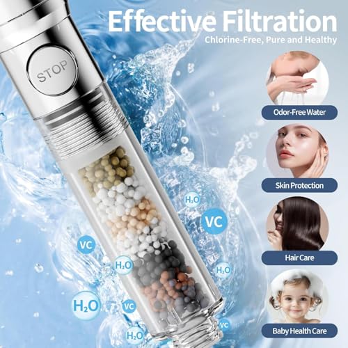 - ترشيح 7 مراحل للمياه النقية: رأس دش التدليك القابل للإزالة مع خرطوم يستخدم نظام ترشيح ممتاز من 7 مراحل مع نحاس كيه دي اف والكربون النشط وخرز فيتامين سي لإزالة الكلور والمعادن الثقيلة والشوائب الضارة بفعالية. استمتع بفخامة الماء الناعم والنظيف مع كل دش، مما يحمي بشرتك وشعرك من التلف الناتج عن الشوائب. عمر الفلتر: يوصى به كل 6 أشهر (قد تختلف المدة الفعلية بناءً على جودة المياه وتكرار الاستخدام).