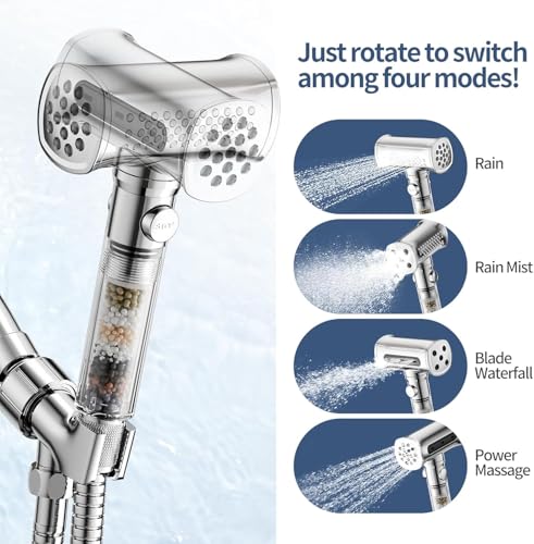 TAFAN - راس دش عالي الضغط على شكل مطرقة مع فلتر اضافي من تافان، 4 اوضاع للرش، راس دش فلتر محمول باليد قابل للفصل مع مفتاح تشغيل وايقاف (كروم)