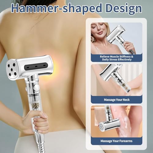- رأس تدليك على شكل مطرقة: يتيح لك الرأس الفريد على شكل مطرقة النقر بلطف على ذراعيك وساقيك ورقبتك وكتفيك مما يوفر تدليكًا مهدئًا للتخلص من التوتر. يدور رأس الدش المزود بفلتر محمول باليد 360 درجة يدويًا، مما يجعل من السهل التبديل بين أربعة أوضاع للرش، من رذاذ ناعم إلى تيار قوي، ليناسب احتياجاتك. يوفر أحد أوضاع رش الشلال المبتكرة تدفقًا قويًا وفعالًا، مما يجعل من السهل تنظيف المناطق التي يصعب الوصول إليها.