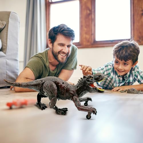 TALGIC - ديناصور روبوت للأطفال بعمر من 6 إلى 7 سنوات، ديناصور بجهاز تحكم للأولاد من 6 إلى 7 سنوات من تايجيك، بني أحمر