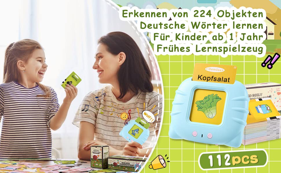 - 【ألعاب علاج النطق المرحة】تتضمن هذه اللعبة التعليمية لبطاقة الفلاش الناطقة قارئ بطاقات و112 بطاقة فلاش مزدوجة الجوانب (224 كلمة رؤية) بما في ذلك الحيوانات والمركبات والشخصيات والأطعمة وما إلى ذلك. بطاقات تعليمية كرتونية، نطق واضح، تأثير صوتي مثير للاهتمام، تكرار القراءة والرؤية الكلمات تحاكي خيال الأطفال وتوسع الآفاق أثناء الاستمتاع بالمرح.